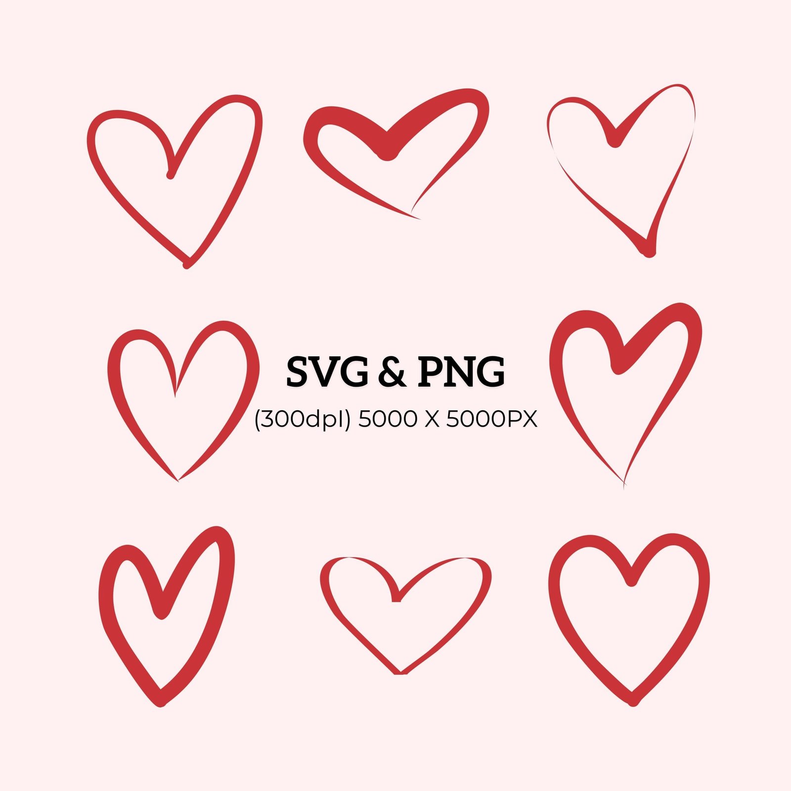 Hand Drawn Hearts SVG & PNG Clipart Set
